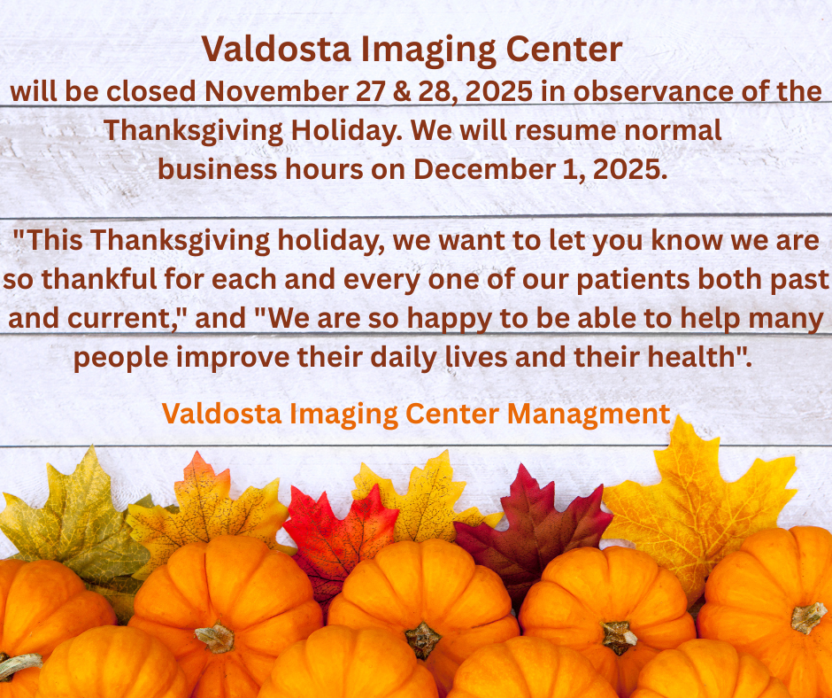 - Insurance Filing (please contact your insurance to ensure that Valdosta Imaging Center is in your network)